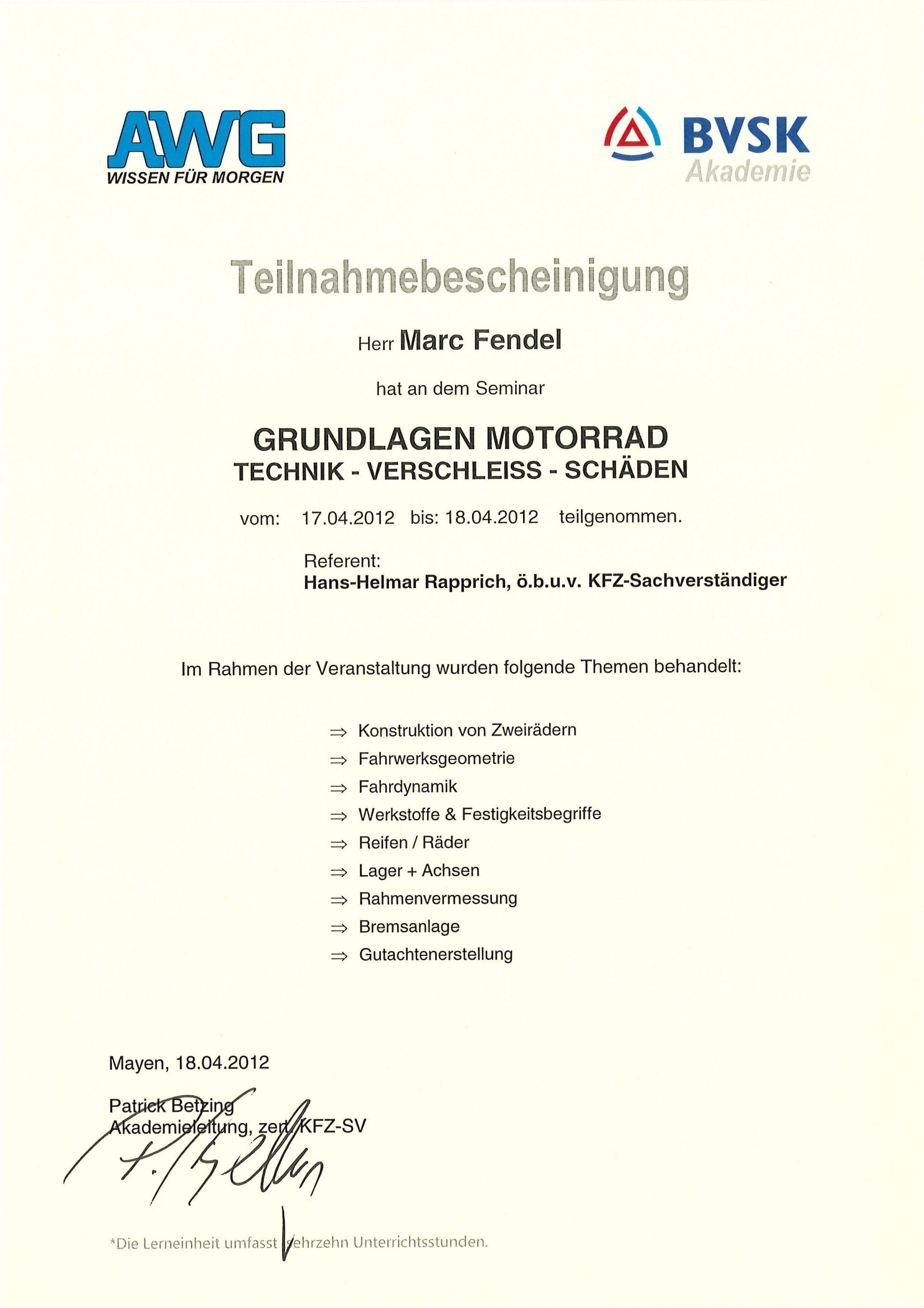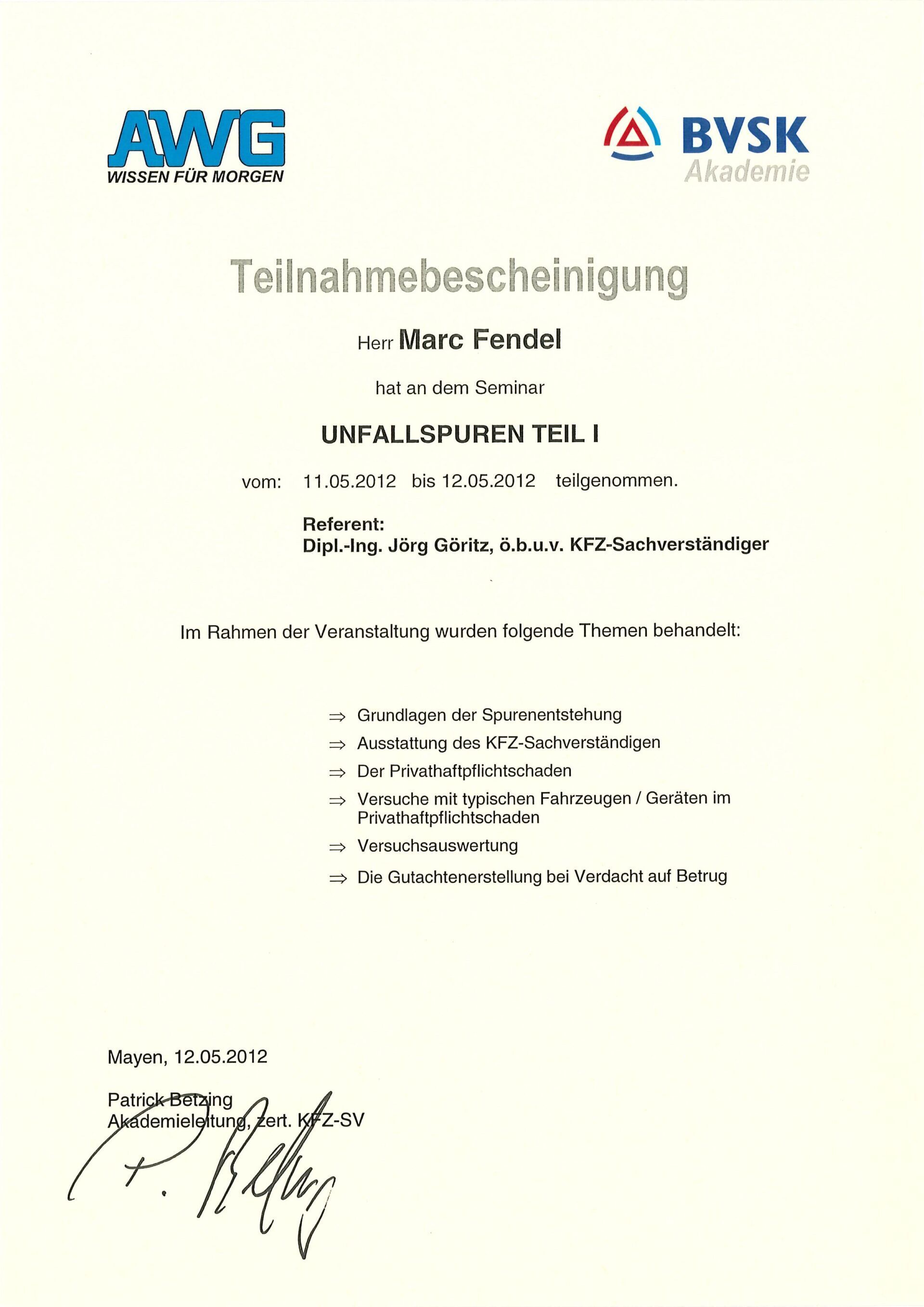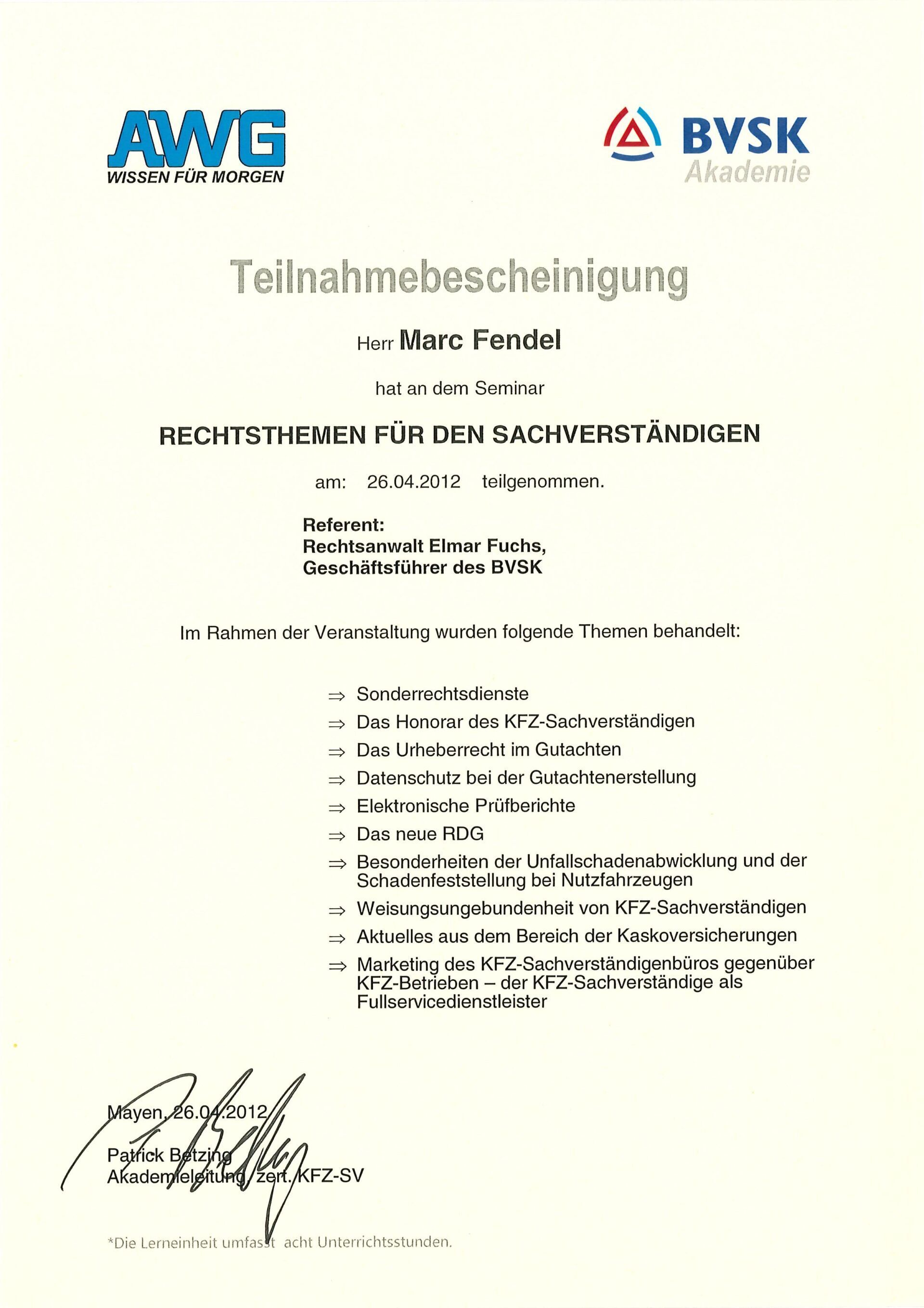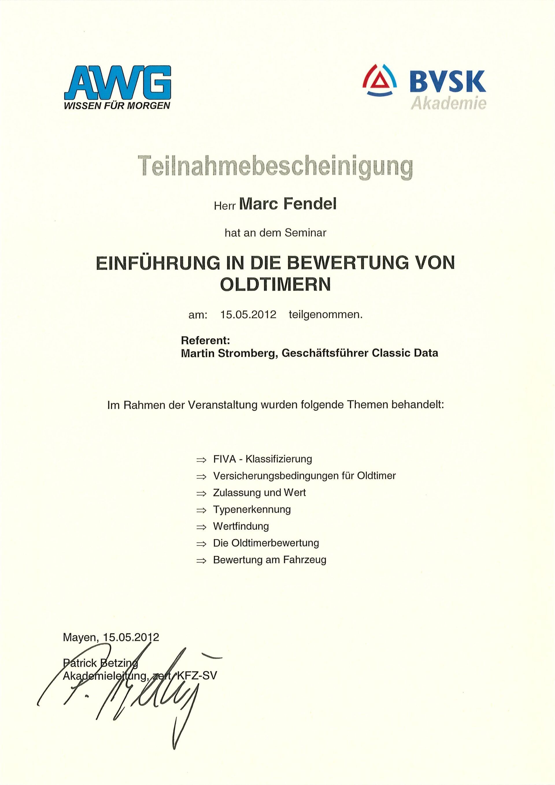 2011 folgte eine Ausbildung zum Kfz-Sachverständigen bei einem großen Versicherungsunternehmen. Meine Aufgabe dort war es Gutachten, Kostenvoranschläge und Reparaturrechnungen diverser Sachverständiger und Werkstätten zu prüfen und ggf. zu korrigieren.