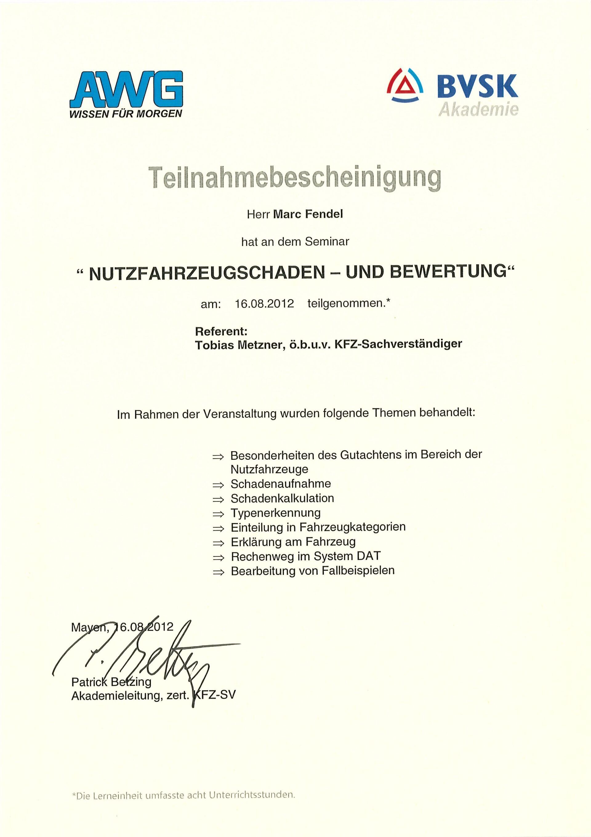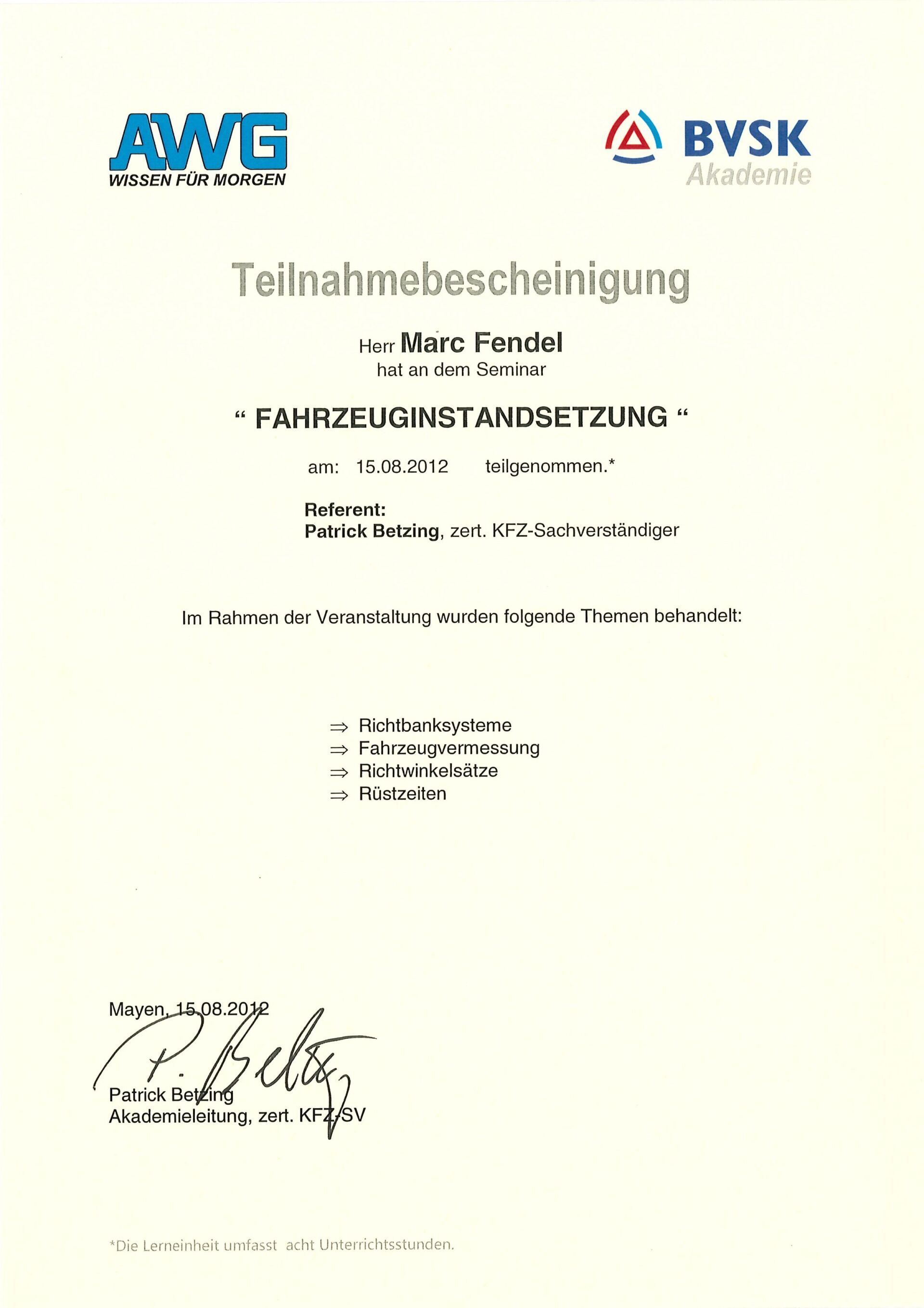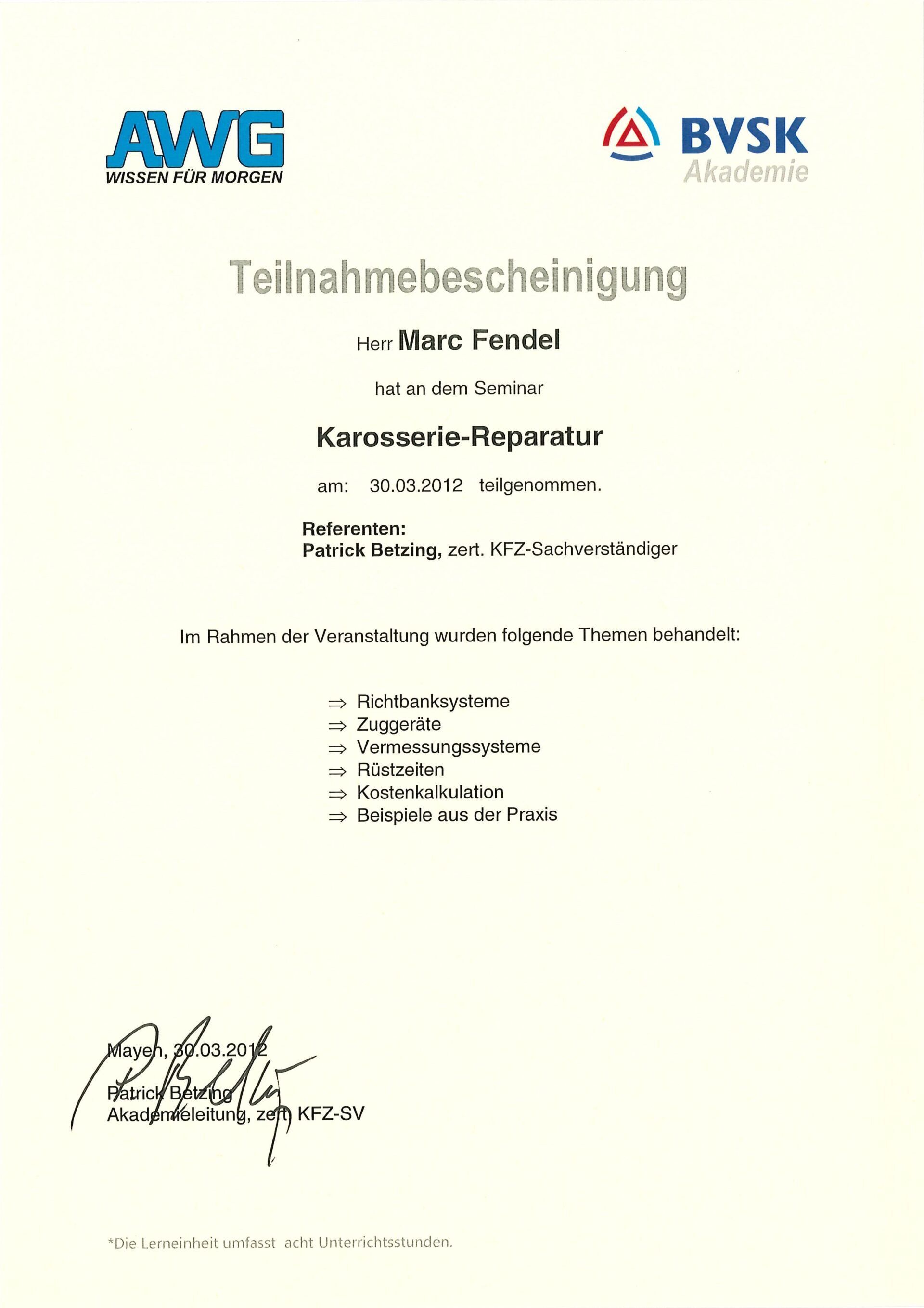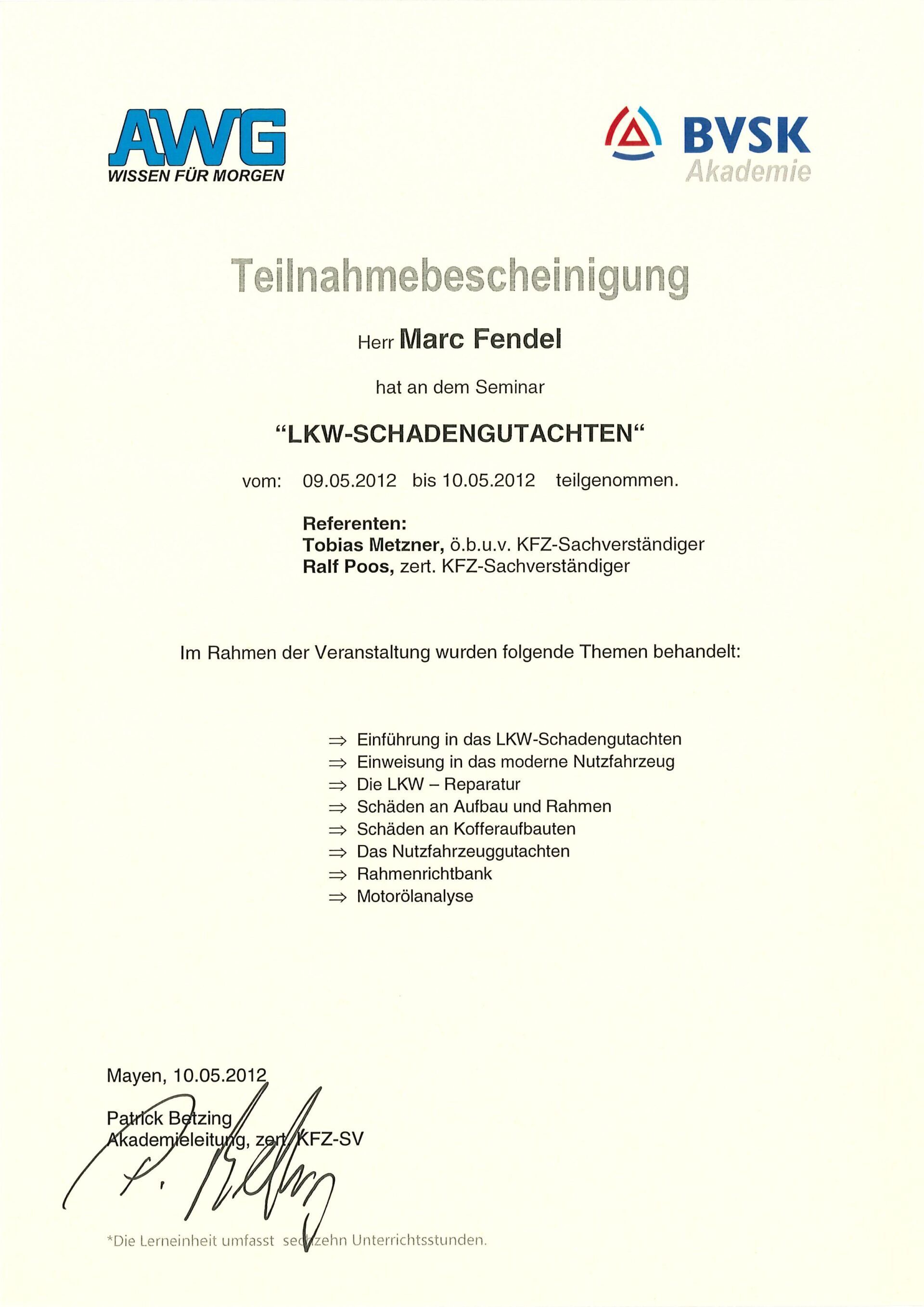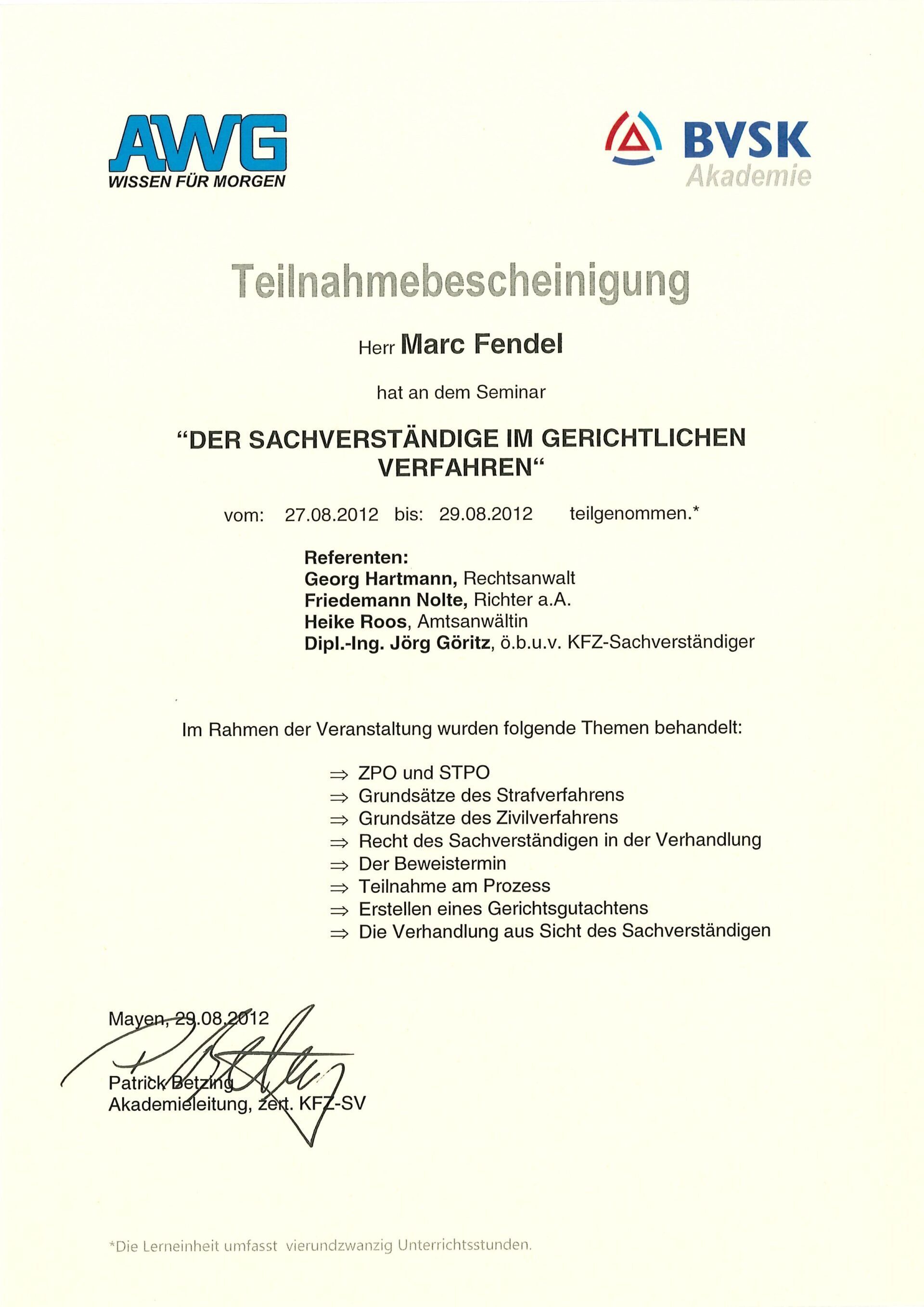 2011 folgte eine Ausbildung zum Kfz-Sachverständigen bei einem großen Versicherungsunternehmen. Meine Aufgabe dort war es Gutachten, Kostenvoranschläge und Reparaturrechnungen diverser Sachverständiger und Werkstätten zu prüfen und ggf. zu korrigieren.